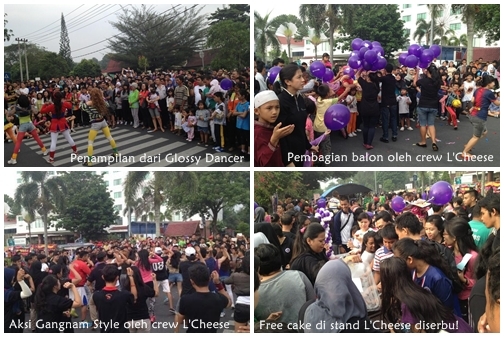 Acara dimulai jam 7 pagi oleh teman-teman dari @StandUpIndoPku sebagai MC, dilanjutkan penampilan dari Glossy Dancer. Acara yang berlangsung selama kurang lebih 2 jam tersebut ditutup dengan penampilan apik dari crew L’Cheese Factory berkolaborasi dengan Glossy Dancer menampilkan gerakan Gangnam Style dan membagi-bagikan cake gratis kepada semua pengunjung yang hadir.