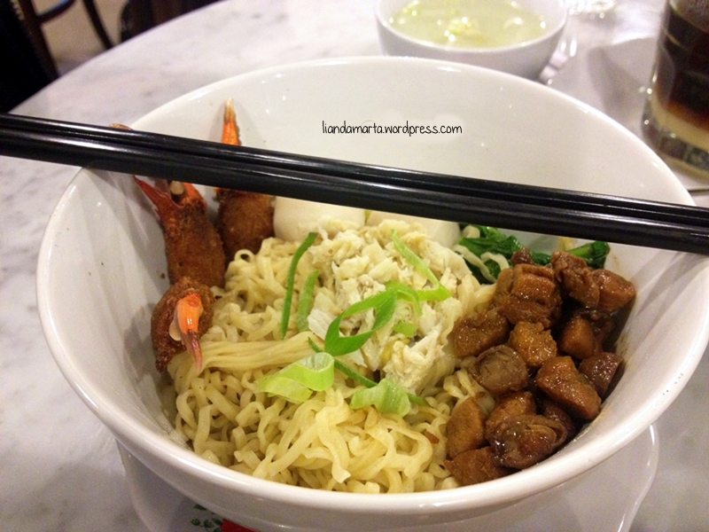 Bakmi Ayam Kepiting yang Abang pesan yaaa, standar bakmi ayam biasa ajah. Plus ada bonus daging kepiting dan baso ikan di dalamnya. Lalu kalo minumannya Koffie Susu Indotjina juga sebenarnya gak ada yang spesial, soalnya kopi susu biasa. Mungkin yang unik ya di penamaannya yang jadoel ituh. Hehehe.