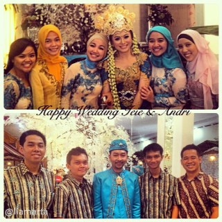Selama masa-masa kita sering bareng itu, secara tidak langsung saya jadi tau banyak tentang kehidupan Ieie. Terutama cerita tentang Ieie dan pacarnya, Andri, yang tahun ini genap 8 tahun pacaran. Sedikit banyak saya tau tentang jatuh bangunnya hubungan mereka. Sampai akhirnya Andri melamar Ieie tahun 2012 silam. Dan 8 Mei 2013 lalu, akhirnya mereka resmi menjadi suami istri. Sebagai salah seorang teman dekatnya, saya turut merasa bahagia tak terkira. Saya dan Abang juga sudah merencanakan dari jauh-jauh hari untuk hadir di acara pernikahan mereka dan menyaksikan langsung prosesi ijab kabul sampai resepsi.