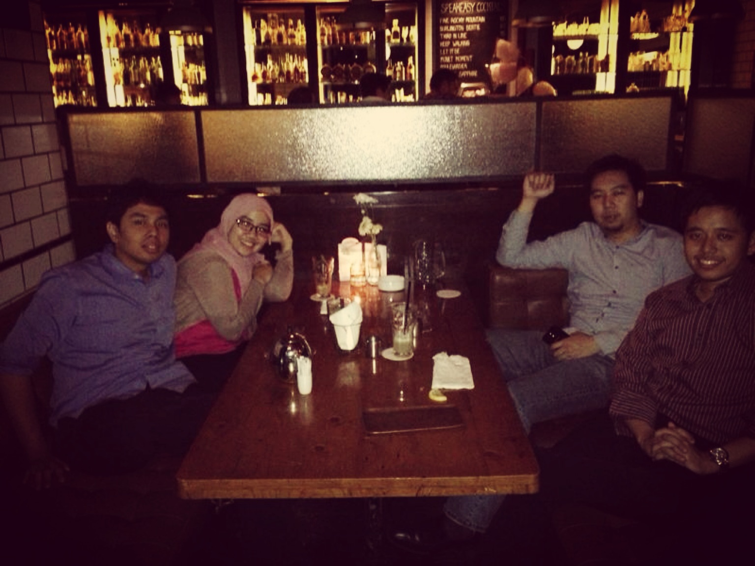 Hari Kamis seusai pelatihan, saya dijemput sama Abang dan dua teman dekat Abang jaman kuliah di Bandung dulu. Diajak makan di kawasan Gatsu apa ya? Saya lupa nama tempatnya apa huehehe. Maklum aja ‘diculik’nya udah malam banget, udah jam 11 lewat. Mata saya juga udah kriyep-kriyep. Tapi demi bisa kongkow-kongkow dengan dua orang sibuk itu ya saya paksain melek deh. ๐ –> baru inget nama tempatnya, Loewy di Oakwood Kuningan. Next time kalo ke sana lagi deh ya direview, lupa soalnya waktu itu mesan apa aja, trus ga sempat fotoin makanan juga karena hp lowbat. ๐