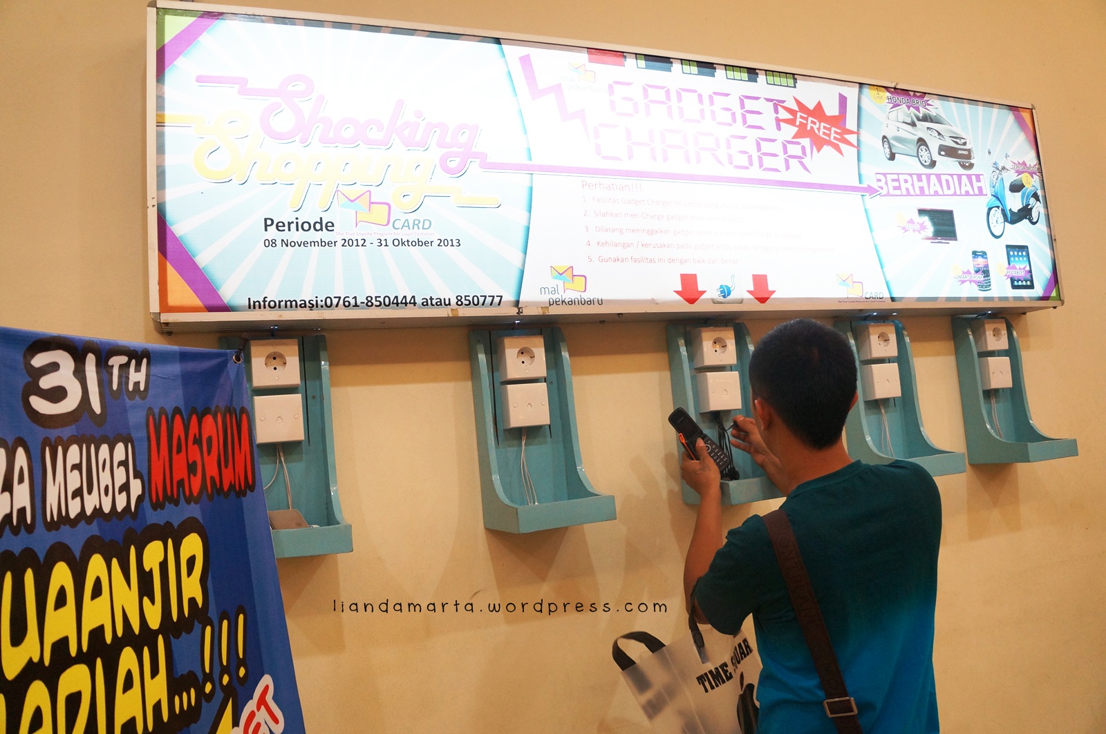 Maka dari itu saya berterima kasih sama Mall Pekanbaru yang menyediakan Gadget Charger Area ini di beberapa sudut mallnya. Free pulaaa.. Cihuy! Asik banget gak sih hihihi. Sebelum ‘ngecas hati’ ketemu Abang kita ngecas hape dulu lah yaaa.. Hahahahahaha geli sendiri saya ngetik kalimat barusan. π π π