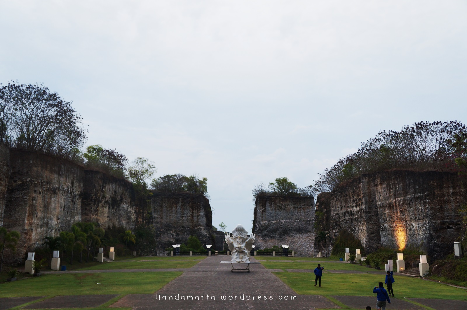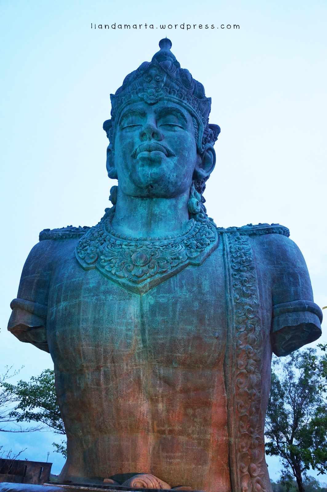 Setelah dari Tanah Lot, yang tadinya kami berencana ingin melihat sunset dan menonton kecak di Uluwatu, tapi berhubung jalanan rada macet dan kemungkinan besar gak akan terkejar untuk sampai ke uluwatu + cuaca yang mendung berangin, kami pun memutuskan ke Garuda Wisnu Kencana (GWK) saja.
