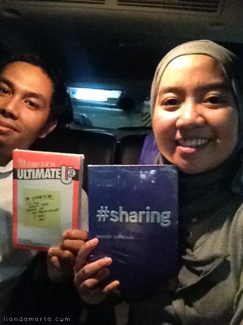 Malamnya, kami jalan-jalan ke toko buku trus masing-masing beli 1 buah buku untuk ditukarkan. Jadi saya akan dapat 1 buku dari Abang, dan vice versa. Sempat bingung juga mau beliin buku apa. Ada beberapa judul buku yang kepikiran sama saya, tapi akhirnya saya memutuskan beli bukunya Rene yang judulnya Ultimate U. Sedangkan Abang beli buku Sharing-nya Handry Satriago yang memang udah jadi incaran saya sejak lama. 🙂