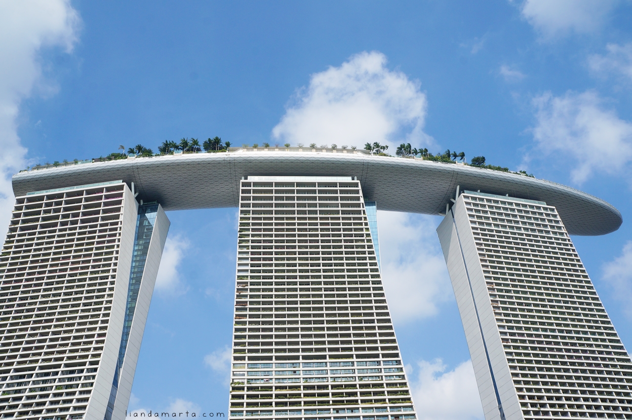 Di atas skyway ini viewnya kece juga nih untuk foto-foto. Ada beberapa landmark Singapura yang bisa di-capture. Singapore Flyer, Dome & Super Grove Tree Gardens by The Bay, dan tentu saja the famous Marina Bay Sands yang bentuknya menyerupai sebuah kapal di atas tiga gedung pencakar langit. 🙂