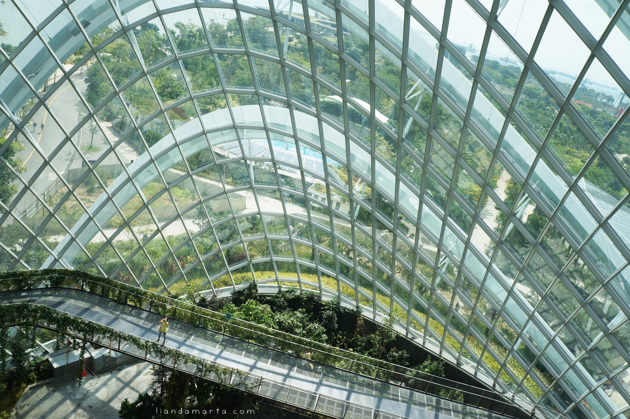 Udara dingin dan beragam tanaman tropis menjadi hal yang bisa diexplore saat masuk ke dalam Cloud Forest ini. Jika di kunjungan sebelumnya saya tidak sempat merasakan berjalan di atas skyway, nah di kunjungan kali ini saya gak mau melewatkannya dong. Saya dan Abang naik lift sampai ke lantai teratas dan kemudian jalan di atas skywaynya. Rasanya? Menegangkan! Lihat ke bawah agak gamang dan pusing saking tingginya. 😀